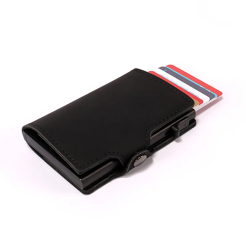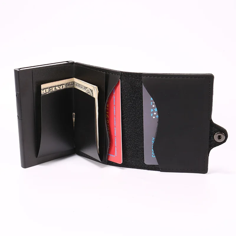 Flash Sale Casekey Luxury Carbon Fiber Mini Pop Up Rfid Wallet for Men Slim Leather Business ID Credit Card Po