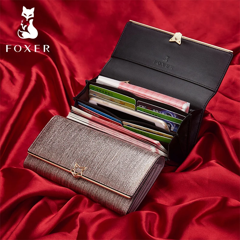 Clearance FOXER Brand Women Split Leather Wallets Female Clutch bag Fashion Coin holder Luxury Purse for Lady